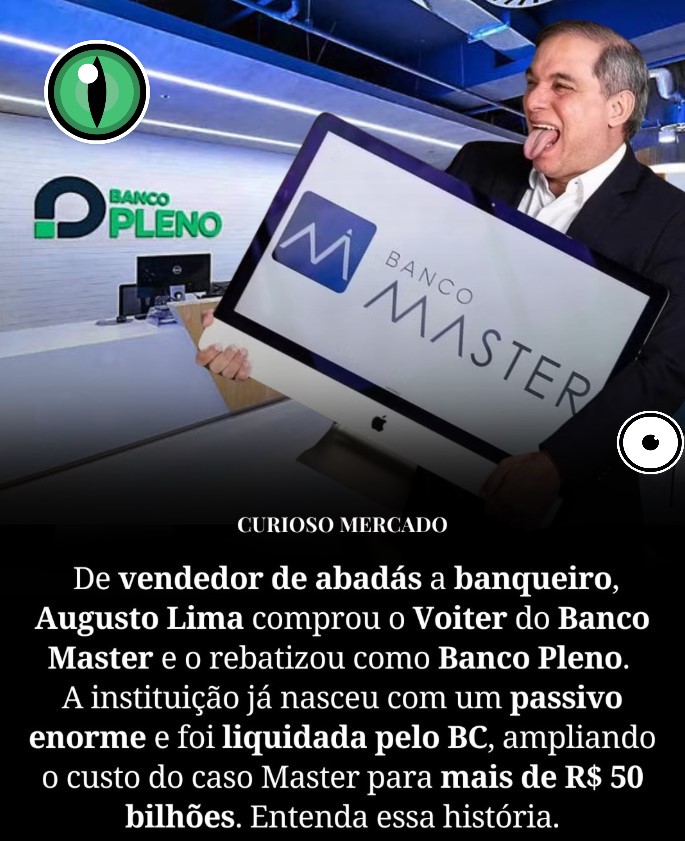 O Banco Central do Brasil decretou, na quarta-feira (18), a liquidação extrajudicial do Banco Pleno S.A., bem como do regime especial à Pleno Distribuidora Títulos e Valores Mobiliário S.A., do conglomerado prudencial Pleno. A decisão atinge as instituições financeiras controladas por Augusto Ferreira Lima, ex-sócio e ex-CEO do Banco Master, que foi liquidado em Novembro do ano passado, por fraudes de R$ 12,2 bilhões que levaram o banqueiro Daniel Vorcaro à prisão.
