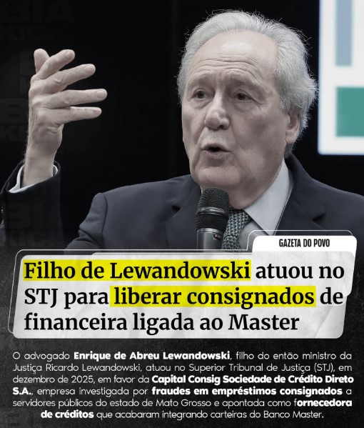 Dois dos maiores escândalos da atualidade têm em comum o sobrenome Lewandowski entre os personagens. No caso do INSS, a Associação dos Aposentados Mutualistas para Benefícios Coletivos (AMBEC) e o Centro de Estudos dos Benefícios dos Aposentados e Pensionistas (CEBAP), contrataram Enrique Lewandowski como advogado no processo que investiga a ladroagem contra velhinhos e pensionistas. O mesmo padrão se repete na bilionária fraude envolvendo o Banco Master.