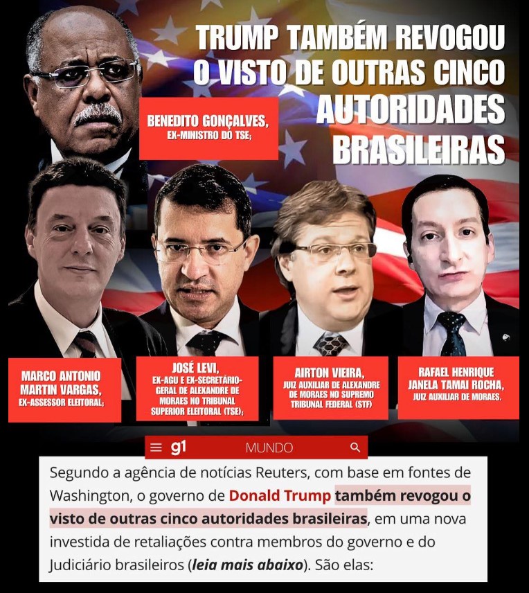Na semana passada, autoridades do governo americano, como o Secretário de Estado, Marco Rubio, prometeram anunciar punições diversas a integrantes do governo e do Judiciário brasileiro, após a condenação por tentativa de golpe do ex-presidente Jair Bolsonaro, assessores e apoiadores.
