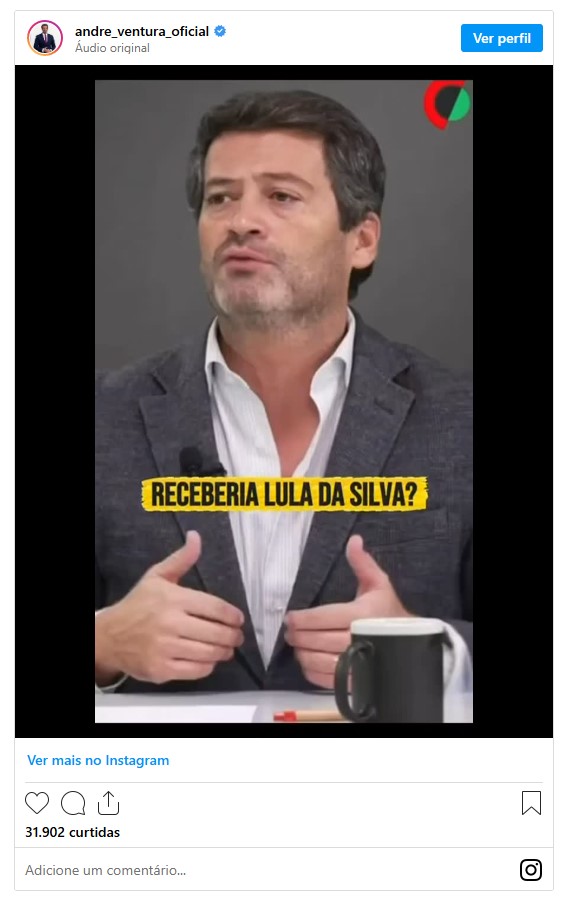 André Ventura fez a ressalva, logo em seguida, na eventualidade de estar em jogo (ou “em causa”, como dizem os portugueses) os interesses do Estado, das empresas e das comunidades portuguesas e tivesse de receber Lula, “fá-lo-ia, mas mantendo essa lógica, de que não gosto muito de estar com ladrões”.