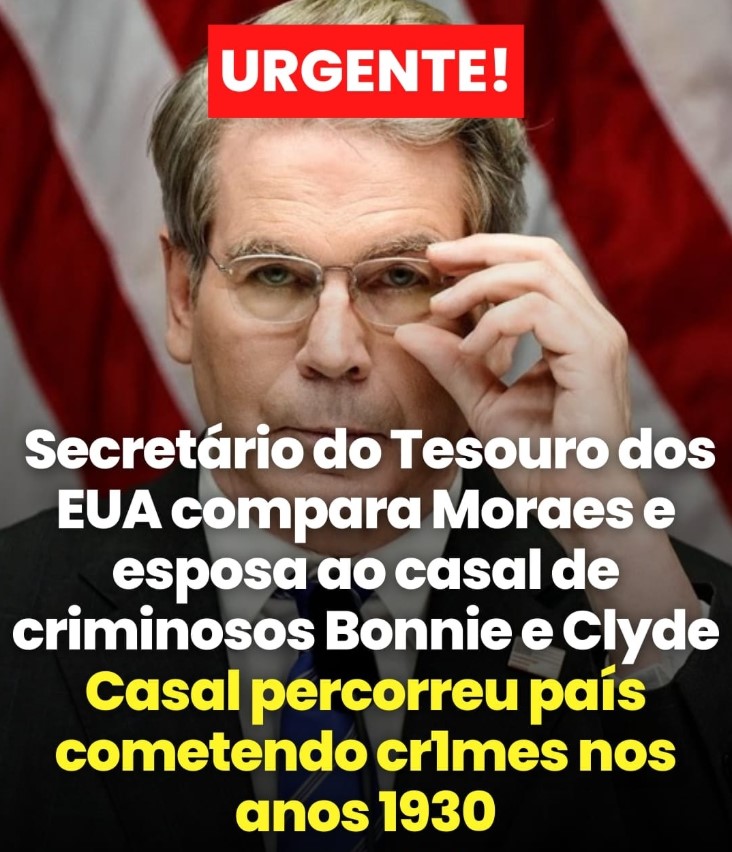 Secretário do Tesouro Scott Bessent compara casal Moraes a Bonnie e Clyde